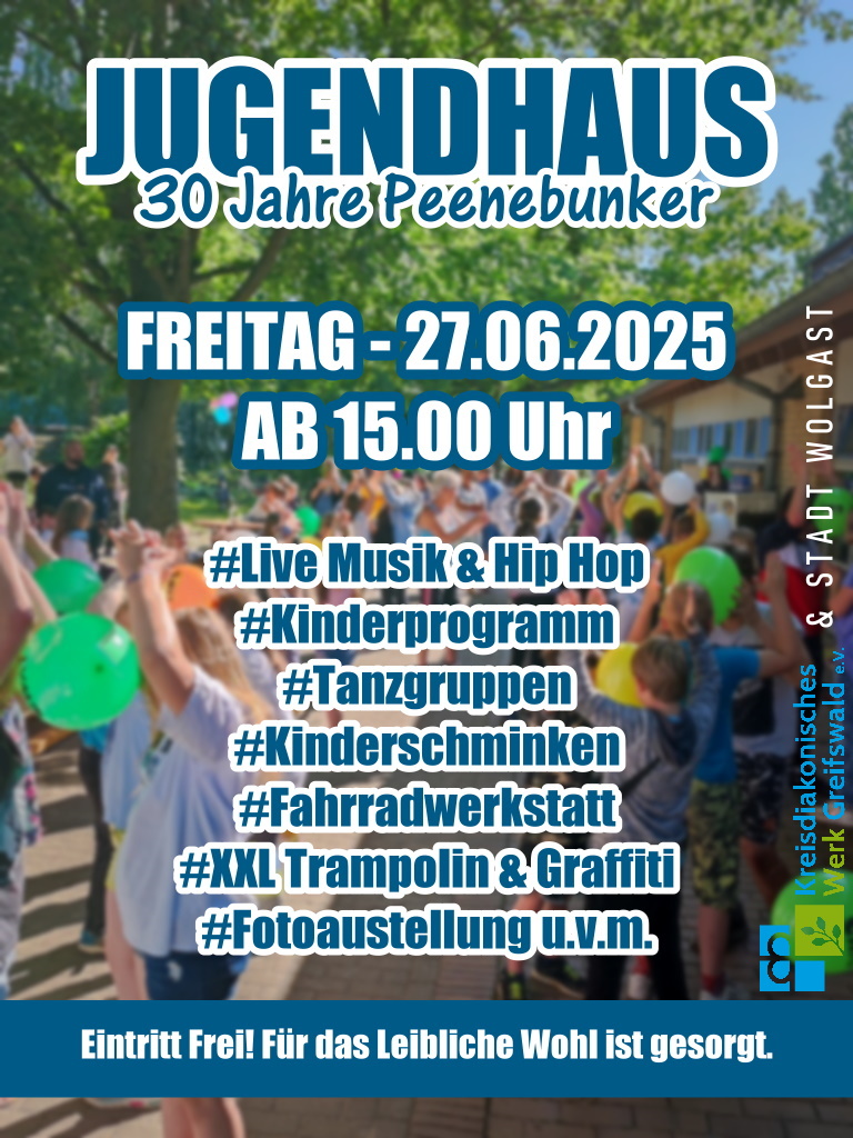 Feiern Sie mit uns – 30 Jahre Jugendhaus „Peenebunker“