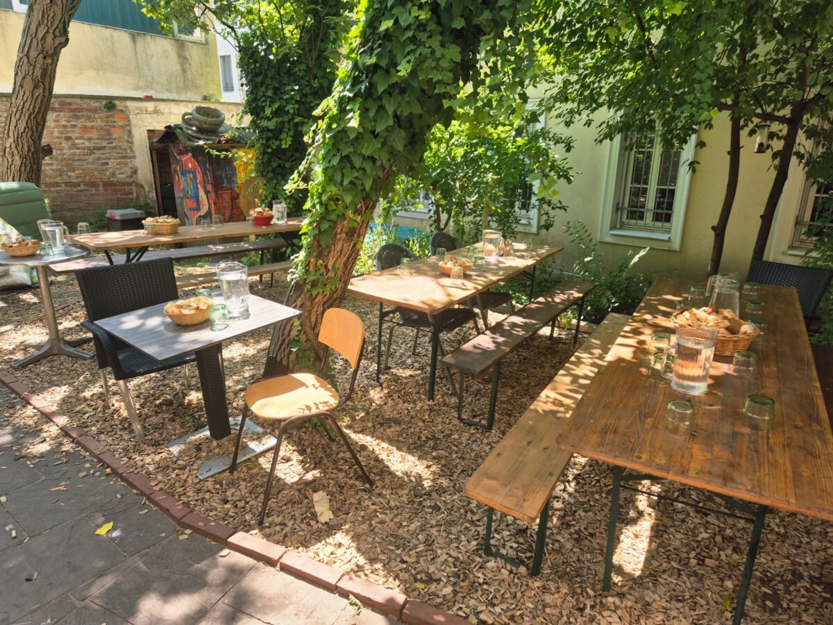 Wir halfen aktiv im Projekt „Häferl“ — einem Wirtshaus für ALLE der Stadt Diakonie Wien, das soziale und ökologische Nachhaltigkeit miteinander verbindet. Wir unterstützten bei der Zubereitung der Mahlzeiten, lernten dabei die freiwillig Engagierten mit deren persönlicher Motivation kennen und erfuhren hautnah vom hauptamtlichen Personal, wie tägliche Abläufe koordiniert werden. Anschließend servierten wir das zubereitete Essen an die Gäste und kamen dabei ins Gespräch.