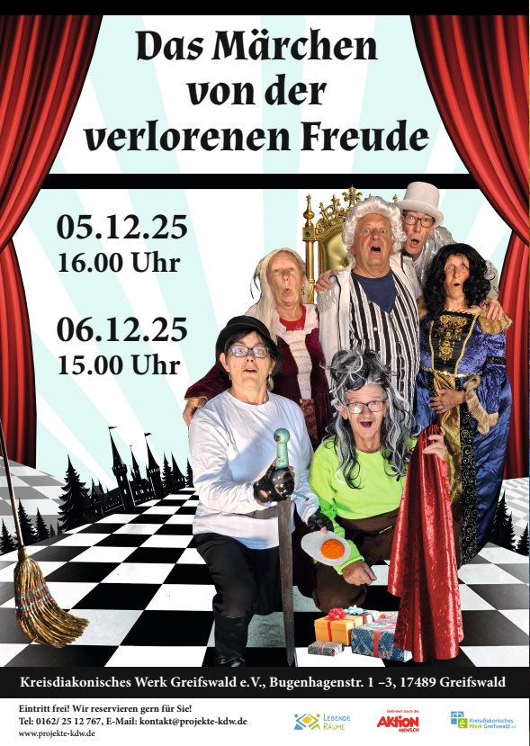 Am 3. Dezember geht es nun nach Dahlen in die dortigen Werkstätten der Diakonie Neubrandenburg. Der Tour-Plan wird uns dann am 5. Dezember nach Greifswald, in die Bugenhagenstraße 1-3, bringen. Dort spielen wir unsere letzten beiden Vorstellungen.